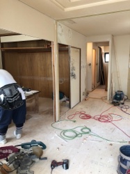 小野市アパート工事では、長年入居されていた入居者様が出られて、古くなったドアや窓枠やクロスなど全面的に改装していきます。